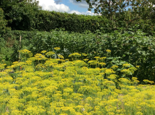 Depuis des années nous essayons de créer un espace agréable à La Rouquette, entre jardin à la française avec une perspective de topiaires de buis et jardin plus spontané et fleuri d’espèces rustiques. Intuitivement, nous avons appliqué le concept du jardin en mouvement, découvert lors d’une conférence passionnante du paysagiste français Gilles Clément. Ce terme crée par Gilles Clément désigne à la fois un type de jardin où les espèces végétales peuvent se développer librement et, une philosophie du jardin qui redéfinit le rôle du jardinier, et qui repose sur l’idée de coopération avec la nature. Sa devise devient : « Faire le plus possible avec, le moins possible contre». Ce concept s’inspire de la friche : espace de vie laissé au libre développement des espèces qui s’y installent et à leurs interactions dans le temps. La manifestation la plus visible est le déplacement physique des espèces sur le terrain, notamment grâce aux semis spontanés, mais aussi à la multiplication végétative permise entre autres par des organes souterrains (rhizomes, tubercules, bulbes, etc.).